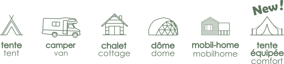 Découvrez aussi nos locatifs de Mobil-Homes, Chalets en bois, Dômes Cocoon ou Tentes équipées.