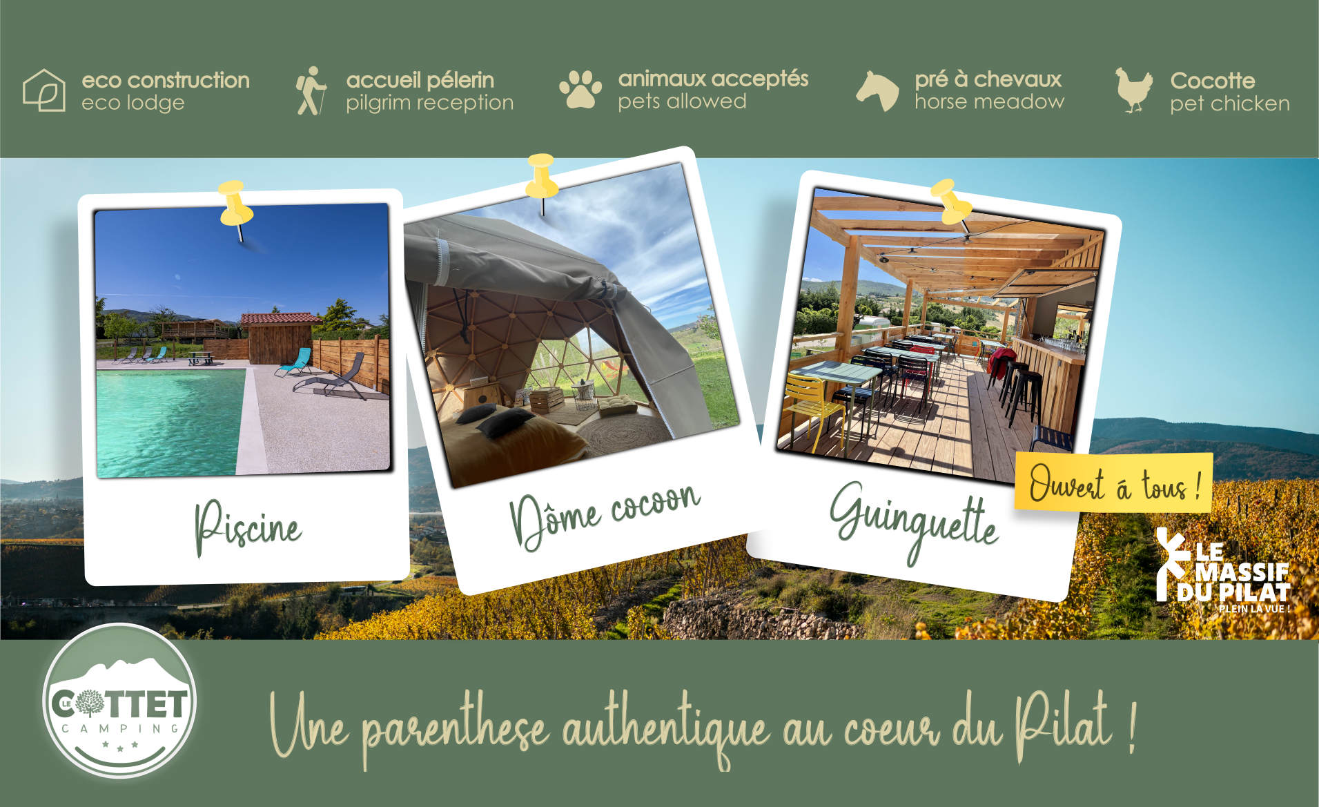Pour un WE insolite ou des vacances en famille, le camping Le Cottet est heureux de vous accueillir dès le mois d’avril !
