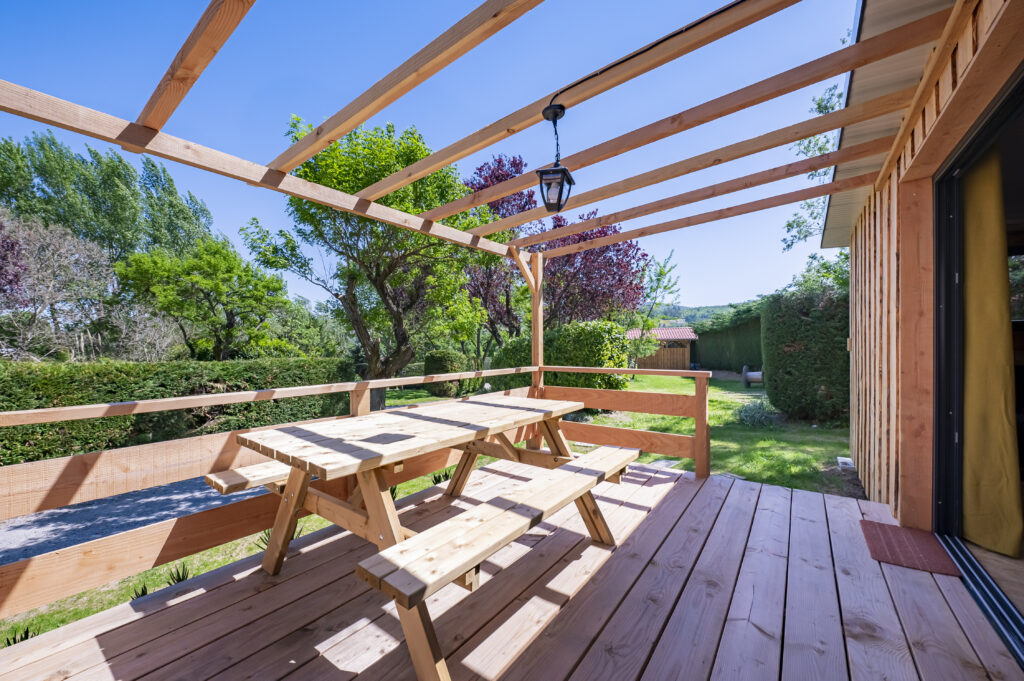 • Les bois de nos chalets ont été acheté dans deux scieries des villages alentours et nous les avons traités avec des produits naturels (huile de lin, essence de térébenthine).