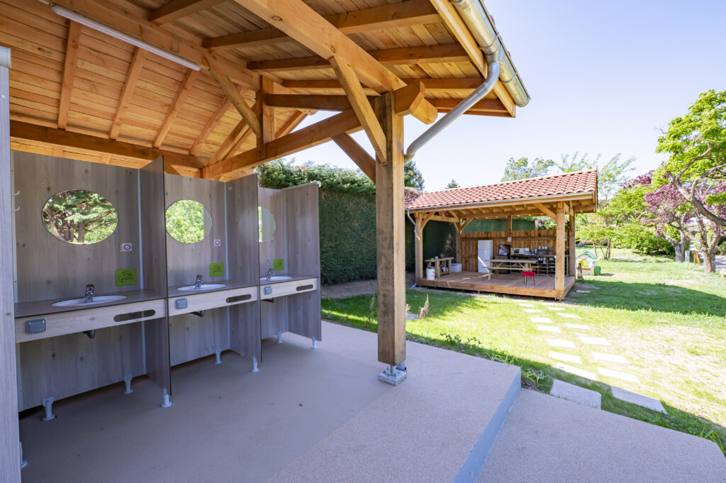 • L’eau chaude du bloc sanitaire est produite par un système solaire thermique, une grande majorité des robinets sont de type « poussoirs ».